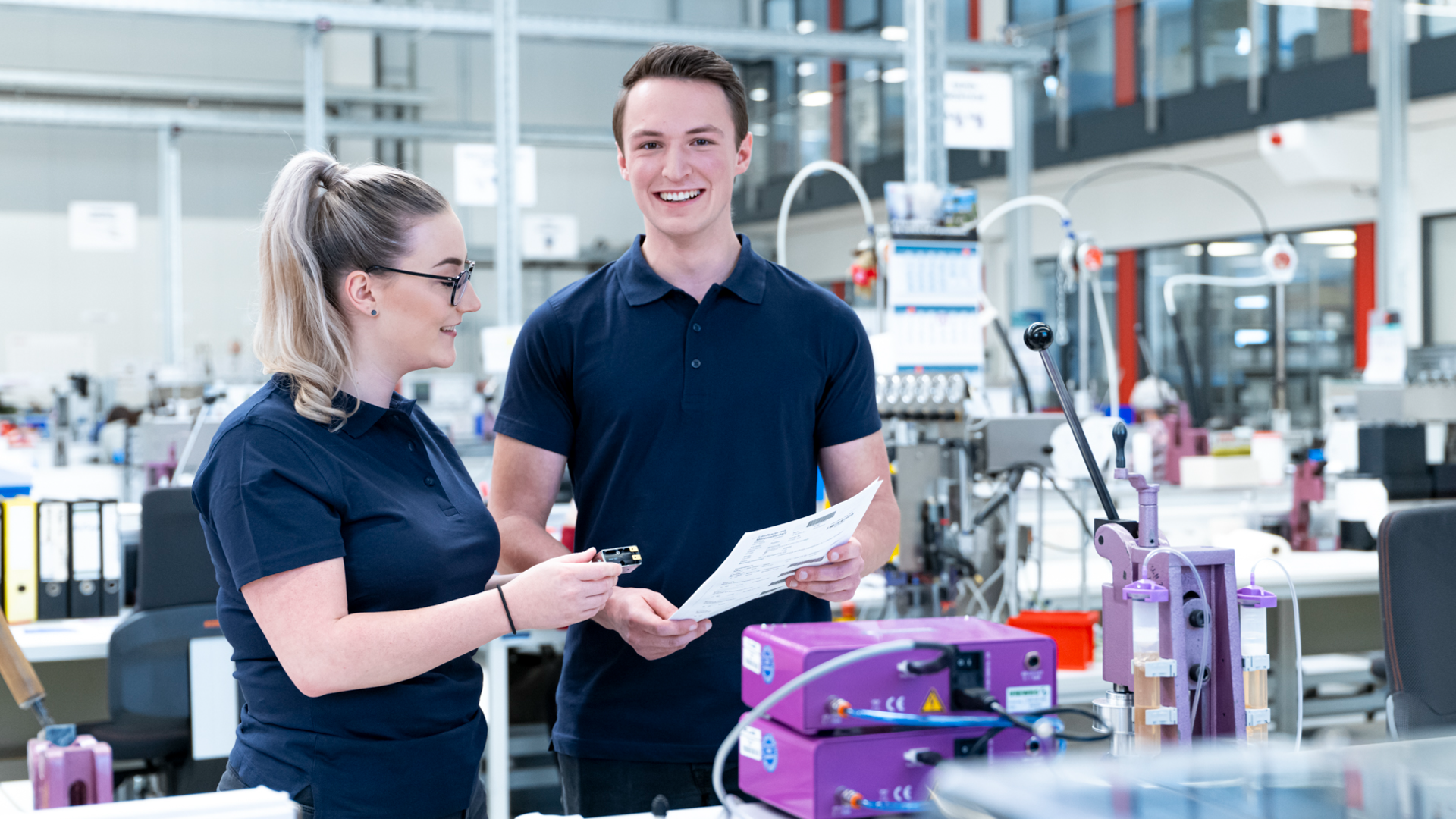 Als Maschinen- und Anlagenführer:in sorgst Du dafür, dass in der Produktion alles läuft: Von der Einrichtung über die Bedienung bis hin zur Wartung von modernen Produktionsanlagen. Du stellst Materialien bereit, richtest Dreh-, Bohr- oder Schleifmaschinen ein, startest die Produktion und kontrollierst die Qualität der fertigen Teile. Auch die Montage von Baugruppen gehört dazu. Neben dem Arbeiten an Maschinen bist Du auch für die regelmäßige Wartung verantwortlich – vom Nachfüllen von Ölen und Kühlmitteln bis zum Austausch von Verschleißteilen. Passt der Job zu mir? Technisches und handwerkliches Arbeiten macht Dir Spaß? Du hast Lust, mit modernen Maschinen zu arbeiten und sie zu bedienen? Genauigkeit und Sorgfalt sind für Dich selbstverständlich? Neugierde, Lernbereitschaft und Eigeninitiative gehören zu Deinen Stärken? Du gehst verantwortungsbewusst mit Maschinen, Werkzeugen und Materialien um? Mathematik, Physik und Deutsch sind Fächer, die Dir liegen? Wenn Du hier öfter „Ja“ sagst, dann ist dieser Beruf genau Dein Ding!
